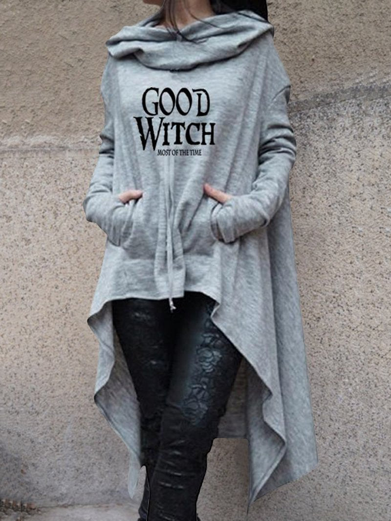 GOOD WITCH MOST OF THE TIME printed long-sleeved women's sweater with two wool pockets