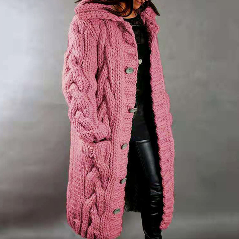 Hooded Solid Color Twist Thick Sweater Cardigan
