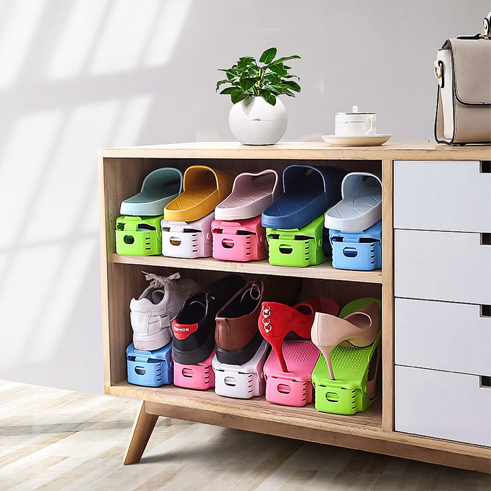 It is a space optimizing organizer that allows you to stack your pair of shoes one on top of one another — so you can double your shoe storage space! By keeping your shoe collection tidy and organized, you can easily find the shoes you want instantly!
