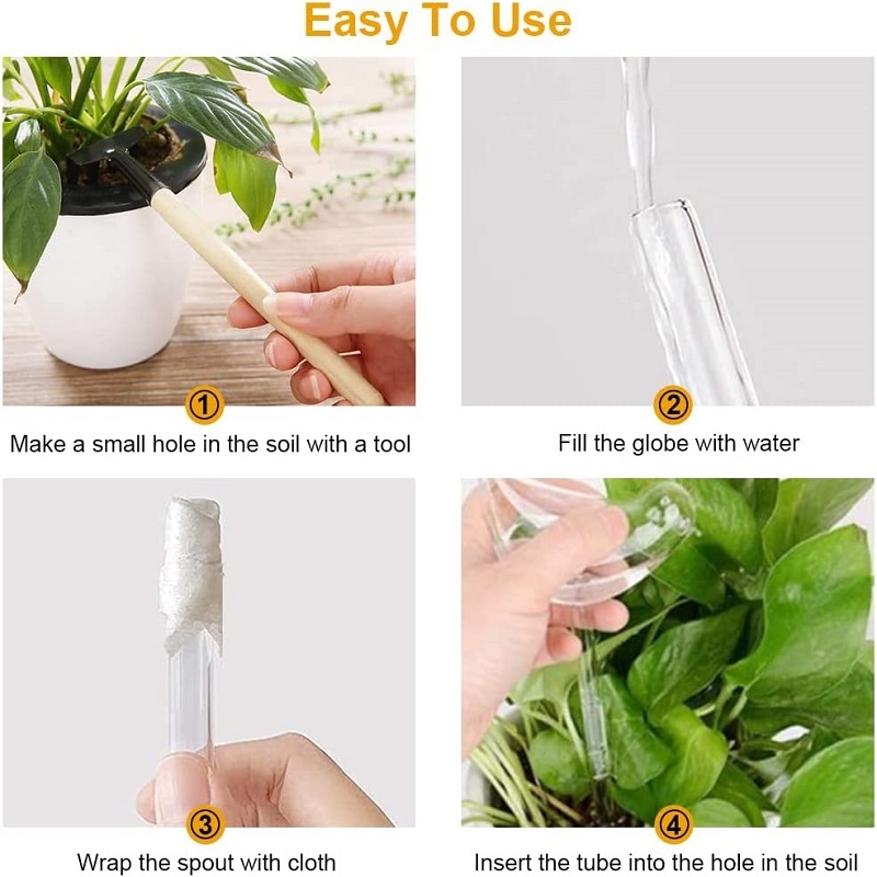 - How to use: First fill the bird-shaped self-sufficient plant watering ball with water;Then wrap the spout with a sponge or permeable cloth to prevent clogging,and finally use other tools to dig a hole in the soil,and then insert the watering bird into it.