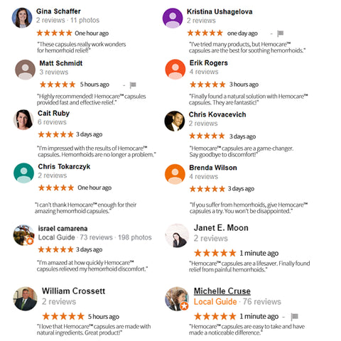 John Smith, board-certified gastroenterologist, said: "Hemorrhoids are the most common problem in anal disorders, and it is important to find a safe and effective treatment that relieves symptoms without causing further damage or irritation. That's why I recommend Hemocare™ to my patients. Composed of all-natural ingredients, they provide fast and effective relief from hemorrhoid symptoms, with no harsh chemicals or artificial ingredients."