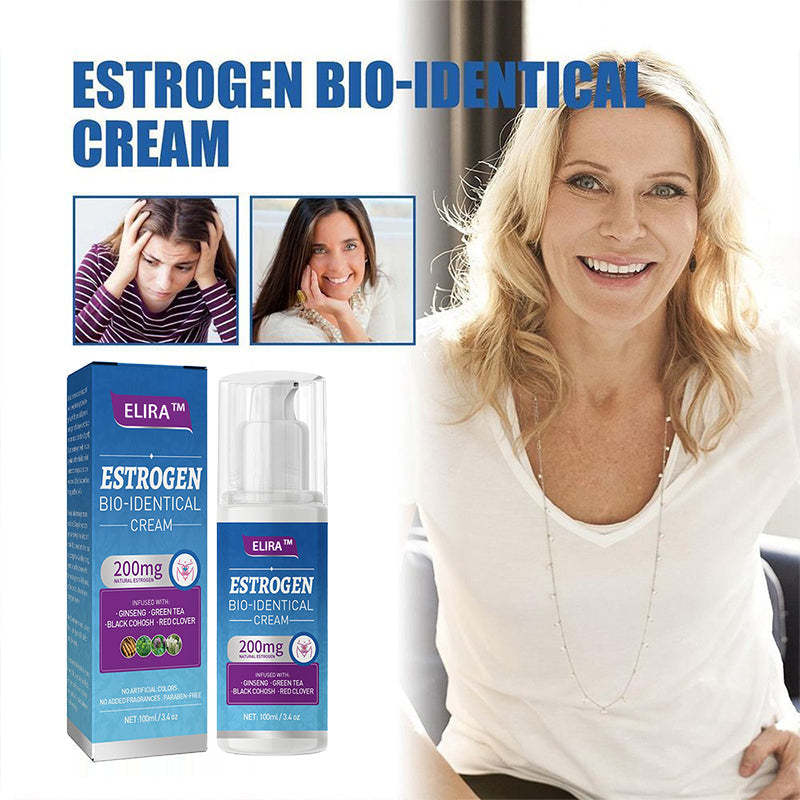 Elira™ cream contains bio-identical estrogen, which helps restore hormonal balance disrupted during menopause. By replenishing estrogen levels, it can reduce hot flashes, night sweats, mood swings, and vaginal dryness. The cream's natural ingredients work in harmony to support overall hormonal equilibrium, providing relief and improving quality of life during the menopausal transition.