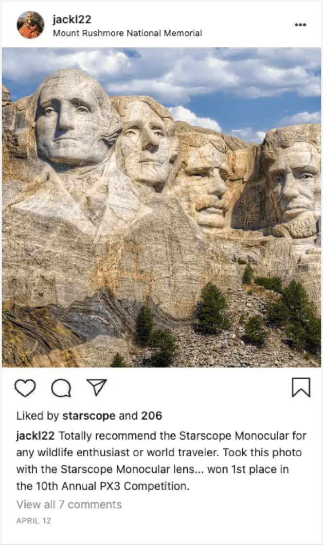 It is very easy to get crisp and clear photos and videos from far away. Just clip the Starscope on your phone. Some users have even won photo contests using this exact setup!