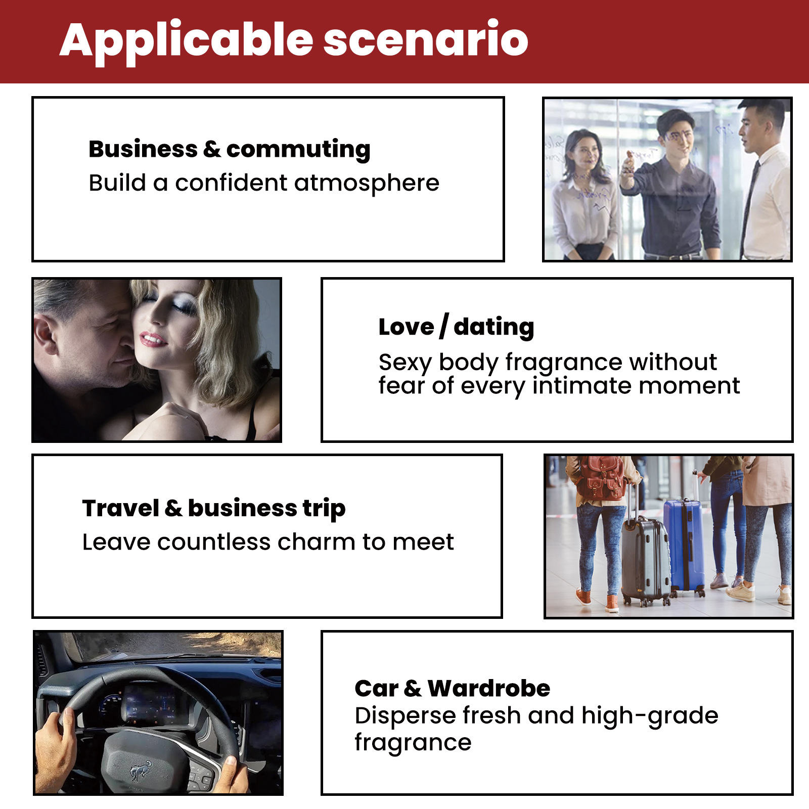 - Experience the enchantment with just a few drops, gliding effortlessly with the roller head, enveloping you in an enduring and captivating aroma that lingers throughout the day.