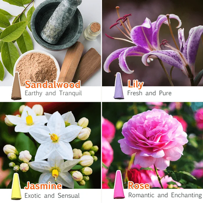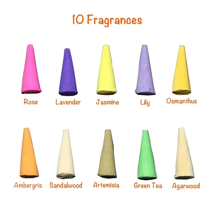 The incense cones are made of natural plant spices. Its fragrance is not as strong as the synthetic flavor. Its scent is more like the scent of the spring garden, fresh and natural.