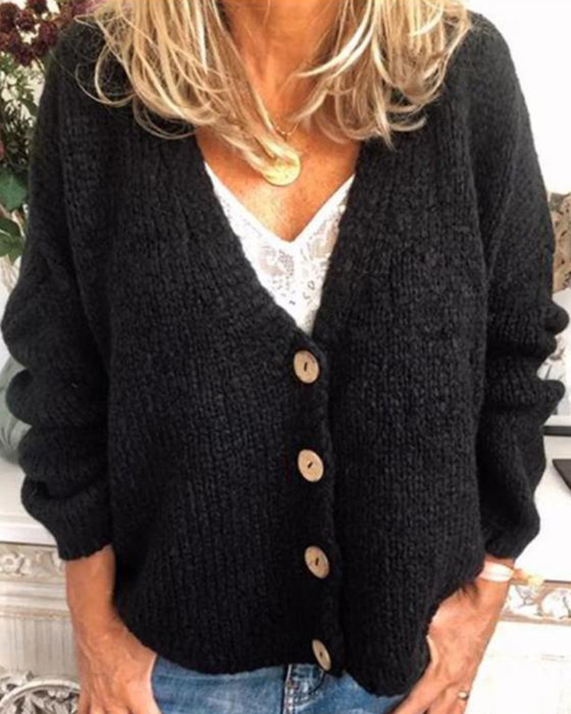 LOOSE CASUAL SINGLE BREASTED V-NECK KNITTED SWEATERS