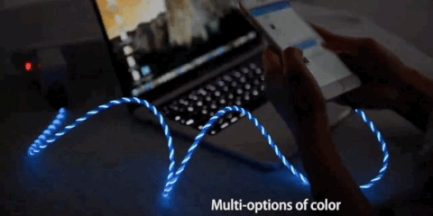 Find your phone in the dark faster with a powerful LED light charging cable. Each cable features "flowing" LED lights that move and flash according to how charged your device is. Once it's fully charged, the movement stops thanks to a built-in smart feature.