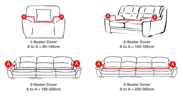 - Four-seater sofa A to A = 92-118 inches (235cm to 300cm), please order one "4 -Seater (93-118 INCH)".