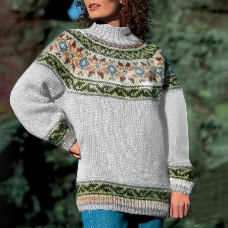Vintage Turtleneck Long Sleeve Jacquard Sweater